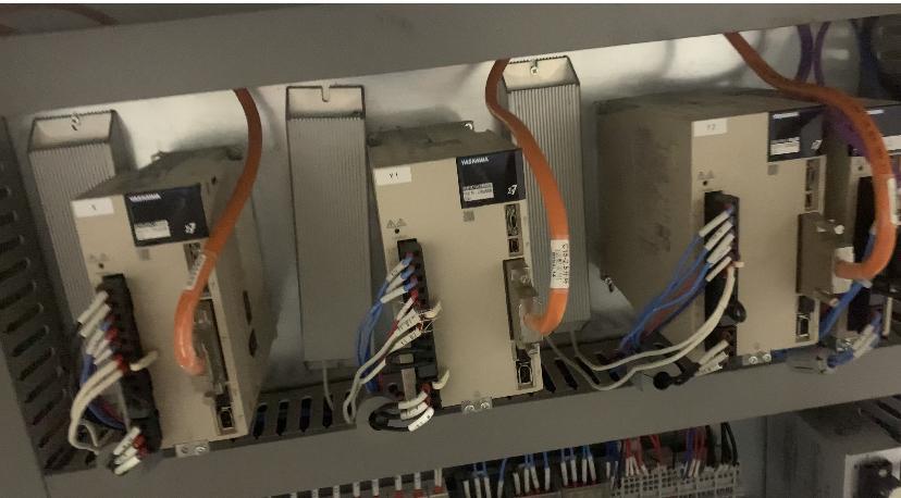 Станок оснащен отдельно стоящей стойкой ЧПУ, такое решение позволяет с удобством провести техническое обслуживание электротехнических устройств станка, также в стойку устанавливается источник резки до 3квт. К сведению во многих станках производства Китай вся электрика находится внутри режущего стола станка, в закрытом коробе, это бюджетное решение для экономии проводов. Последствия такого решения таковы; через год эксплуатации, электроника часто отказывает из за пыли, грязи, повышенной вибрации. Сервомотры YASKAWA ![]()
